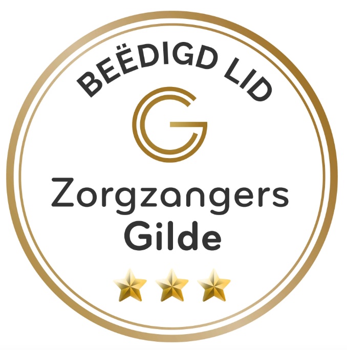 Mijn opleiding tot Zorg-Zangeres deed ik bij Zingen in de Zorg. Onder de bezielende leiding van Maartje de Lint leerde ik op een verantwoorde wijze het vak van Zorg-Zangeres te beoefenen volgens de beproefde BASE methode. Na mijn opleiding trad ik toe tot het Zorgzangers Gilde en legde ik de bijbehorende eed af.